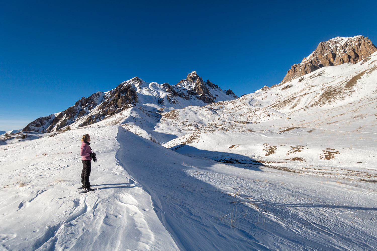 Situé à près de 1 991 mètres d’altitude, le col de Larche – aussi appelé Colle della Maddalena côté italien – est l’un des passages naturels les plus emblématiques entre les Alpes françaises et italiennes. Niché au cœur du massif de l’Ubaye, ce col offre un décor montagnard préservé où grands espaces, sommets arrondis et vallons lumineux composent un paysage d’une grande douceur hivernale. Accessible et ouvert sur de vastes panoramas, il constitue un point de départ privilégié pour les sorties en raquettes, mêlant nature sauvage, tranquillité et découverte du patrimoine alpin. Loin de l’agitation des stations de ski, le col de Larche m'a séduite pour son authenticité.